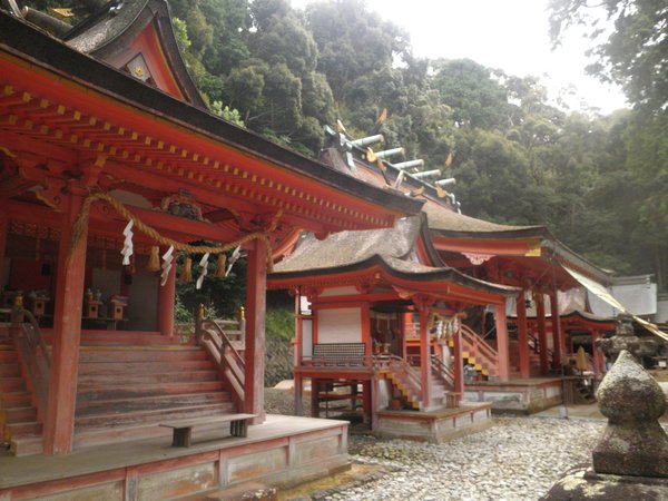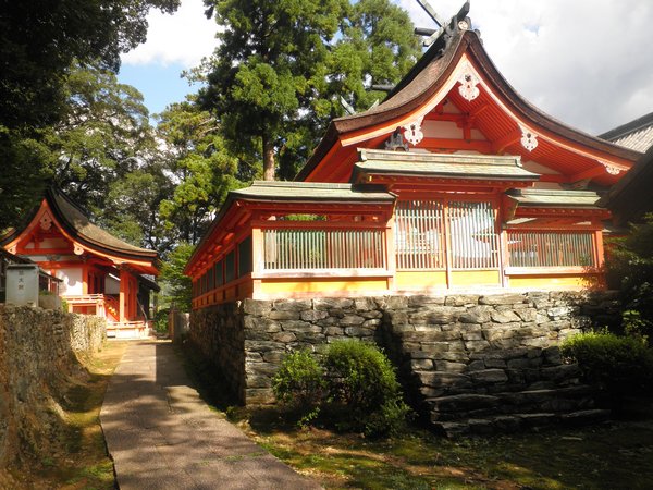 앞의 2개의 섭사는 1599년, 안쪽의 본전은 1591년의 건립으로, 모두 중요문화재.네고로 목수에 의해서 지어진 것 같다(장명을 출세한 히라우치가도 네고로 목수이다).