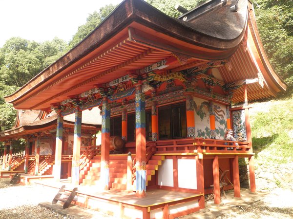 1413년 건립은, 이 지역의 신전에서는 꽤 낡다.대형의 미마사류조로, 목할이 크고, 안정감과 존재감이 있다.장식은 마고내부에 조각을 넣고 그 이외는 장식해 쇠장식을 붙이고 있다.