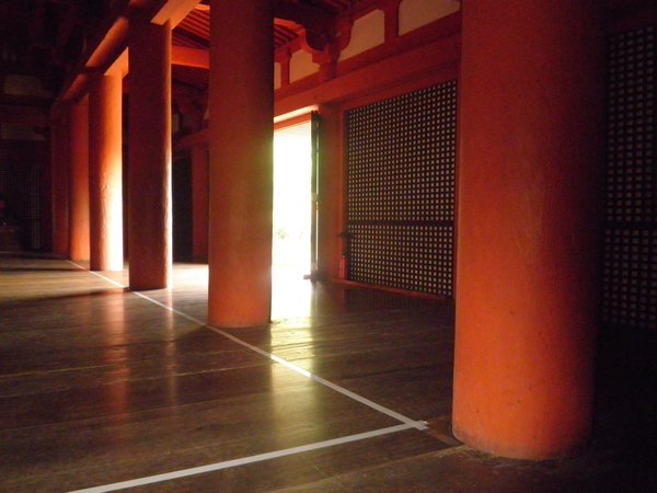 죽 줄선 굵은 기둥.중량감 충분히.앞의 흰 테이프선은 어떻게든 해 주었으면 하는데.어두운 불당 중(안)에서 비추어지는 이 기둥은, 신비적조차 있었다.전의 Shitomi-Door가 전부 열리면, 어떻게 표정이 바뀌는 것일까.