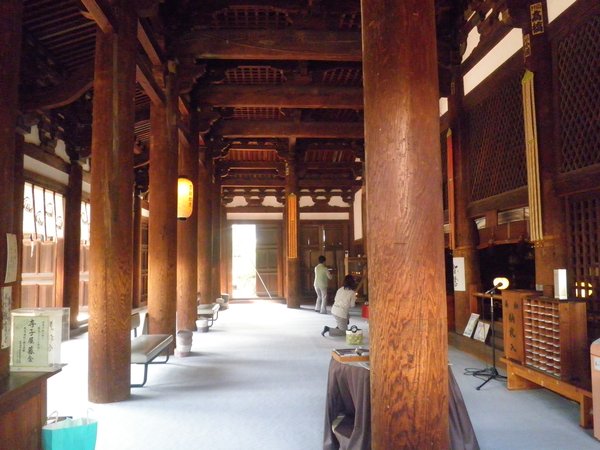 入って思う事は「うわ、明るい」。多くの扉が開いているので当然か。自然光で照らされた空間は、やはり心地よい。この仏堂もGejinの天井がNaijinより高いタイプである。ただし、柱は太くないけど。