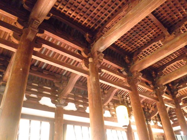 貫、頭貫、通肘木、巻斗。虹梁と海老虹梁。化粧垂木と格天井。全ての部材が整然と配置され、見事なデザインを作っている。柱も太過ぎず、この繊細なデザインとうまく調和している。