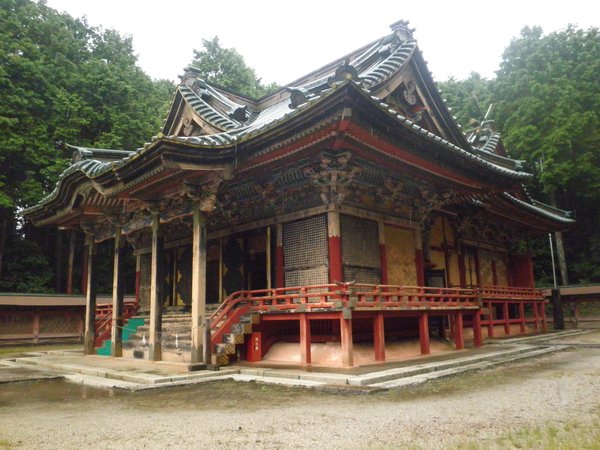日吉東照宮。ここは7月に行った。写真の「日吉東照宮社殿」は拝殿と本殿を石の間で繋ぐ典型的な権現造、1634年、重要文化財。