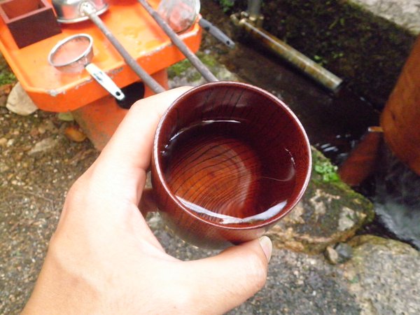 下りて樹下宮の後ろの湧水で喉の渇きを潤す。