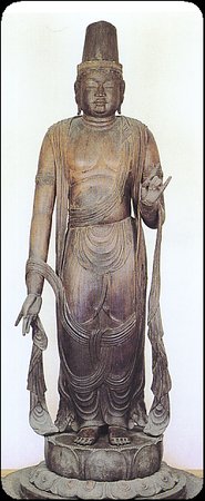 모두 중국·당시대의 목조 불상이다.왼쪽은 헤이안쿄의 라조몬루상에 안치되고 있던 상으로, 국보.