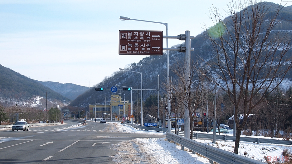 가창에서 팔조령으로 항하는 길 옆에는 녹동서원을 안내하는 표시판이 세워져 있습니다