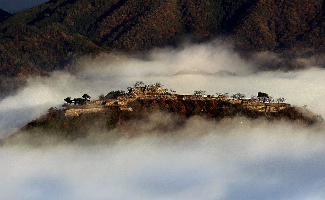 운해에 둘러싸이는 타케다 성터.「천공의 성」라고도 불려 대략 400년전의 돌담이 당시인 채 남아 있습니다.환상적인 풍경이 평판을 불러, 효고현 아사고시에는 몇년전부터 관광객이 급증.많은 날에는 하루 3000명 이상이 방문하는 관광 스포트가 되었습니다.