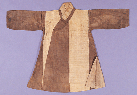 海平尹氏男児(6歳推定)が壽衣に着ていた袍だ. 服の結び紐は消えたが, カラーと掛け襟があって袖は窄袖でMu(