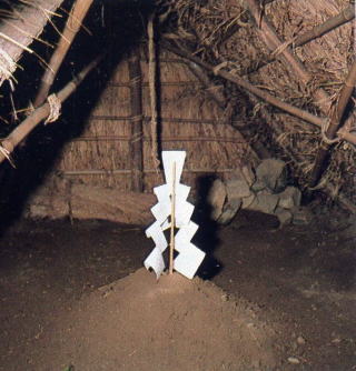 산실은, 1~2간 사방의 넓이로 출산시에 쥐는 밧줄을 내릴 수 있어 좌산 때에 의해 걸리는 「짚섬(그림 참조) 」, 태반을 넣는 탯줄주전자가 두어졌습니다.