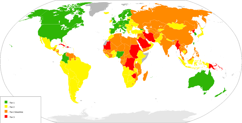 日本における日本人以外の人身売買も国内外から問題視されており、アメリカ国務省の2011年人身売買報告書[3]では、日本を「Tier2: 人身売買撲滅のための最低基準を十分に満たしていないが、満たすべく著しく努力している国」として挙げている。日本は目的国、供給国、通過国であることが指摘されている。