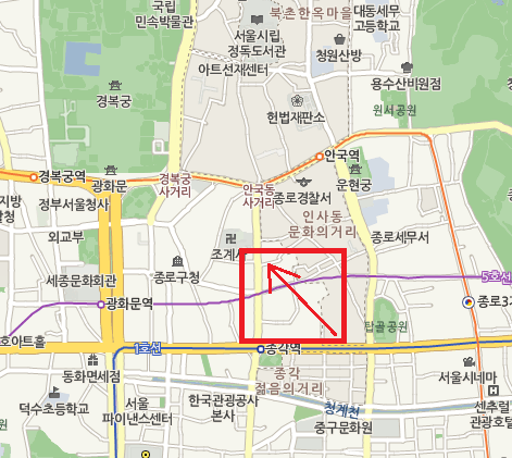 北村は広い意味で定義すれば 清渓川鍾樓の北にある町内という意味で