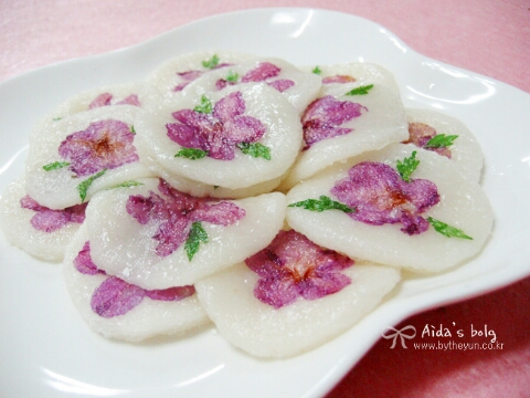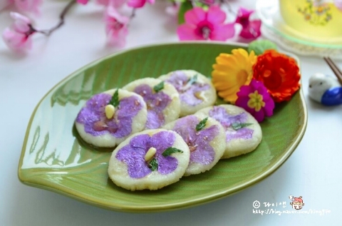 한국에서는 봄이 되면 종종 화전 (花煎)을 만들어 먹습니다.