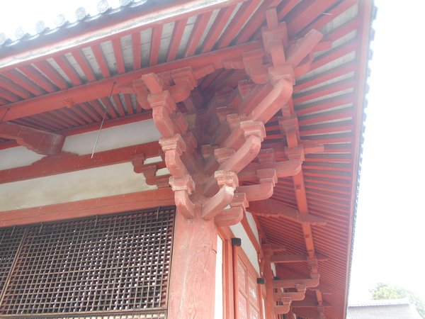 東大寺南大門は6手先の挿肘木で、中途に斗が綺麗に並べられている。斗を綺麗に並べるのは、構造的にはあまり意味がないが、とにかく綺麗に並べ、整理感を出したいという要求からこうなったのだろう。