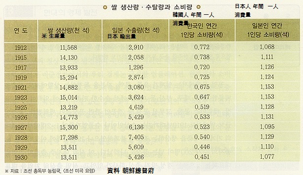 징발되어 일본 국내 농업 노동력이 부족해졌다 이런 이유로 일본의 쌀 생산량은 감소했다