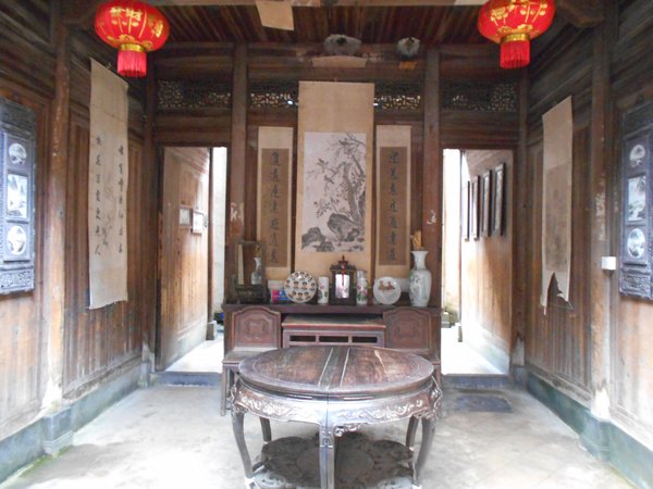 そのため、生活空間を拡大する場合は、2階3階と上方向に伸びていくことになった。高い家屋に囲まれた徽州民居の天井は、まるで井戸の底のようであり、非常に透明感のある澄んだ光が降り注ぐ。