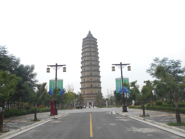 楼閣式の8角13重塔だが、う~ん、それにしてもデカい!87mは伊達ではないね。ちょうど、西安・小雁塔や太谷・普慈寺白塔の2倍の高さだから。