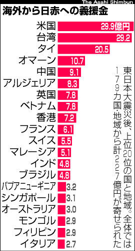 アメリカ台湾が各 1位 2位で 179ヶ国から 227億円にのぼる義捐金がらしいでしょう (〓志)したと