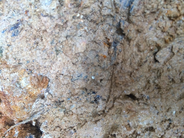 その粘土層のアップ。中にキラキラした黄金色の輝きが^^