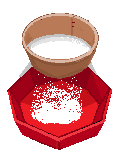 먼저 오미자를 우려놓고 찹쌀가루를 고운 겹체로 쳐서 반죽하고  귤병을 아주 잘게 썰어 놓은 후