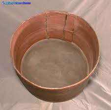 나무를 둥글게 말아서 한쪽에는 솔뿌리 (소나무 뿌리)나 실(絲)로 꿰매어 원형으로 만들고