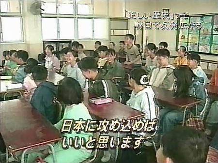 「일본은 거짓말의 역사를 가르치고 있다고 생각하는 사람은 손을 들어」