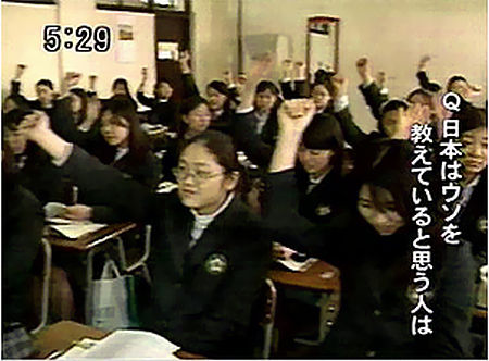 「日本は嘘の歴史を教えていると思う人は手を上げて」