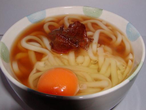 甘露煮にして月見うどんの上にのせました。ギル月見うどん。