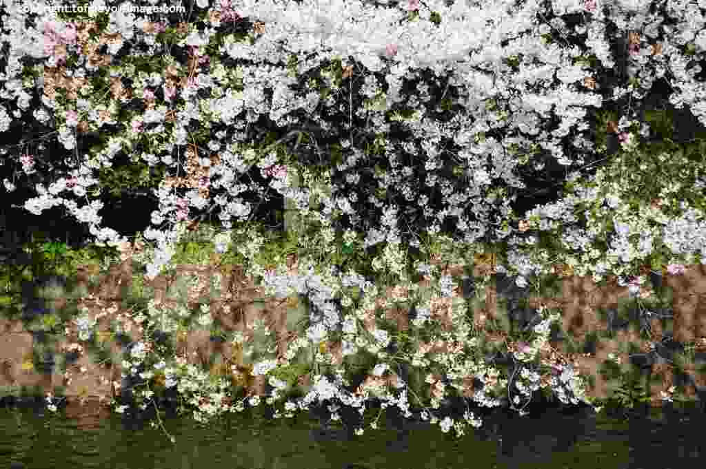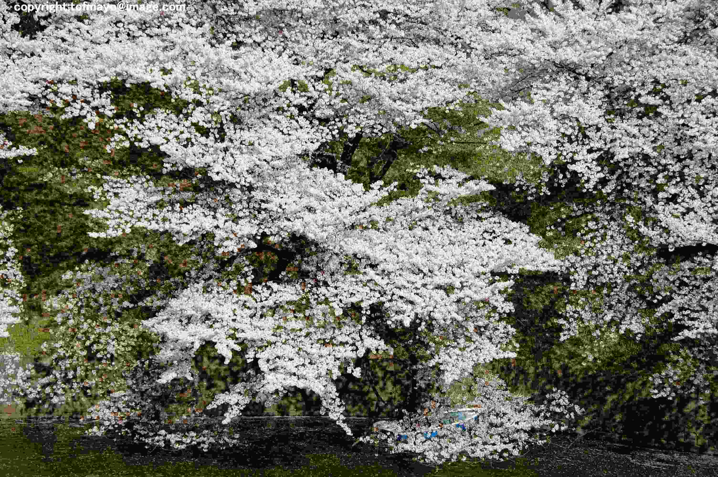 花盛りの下で、たくさんのボートが浮かんでいました。