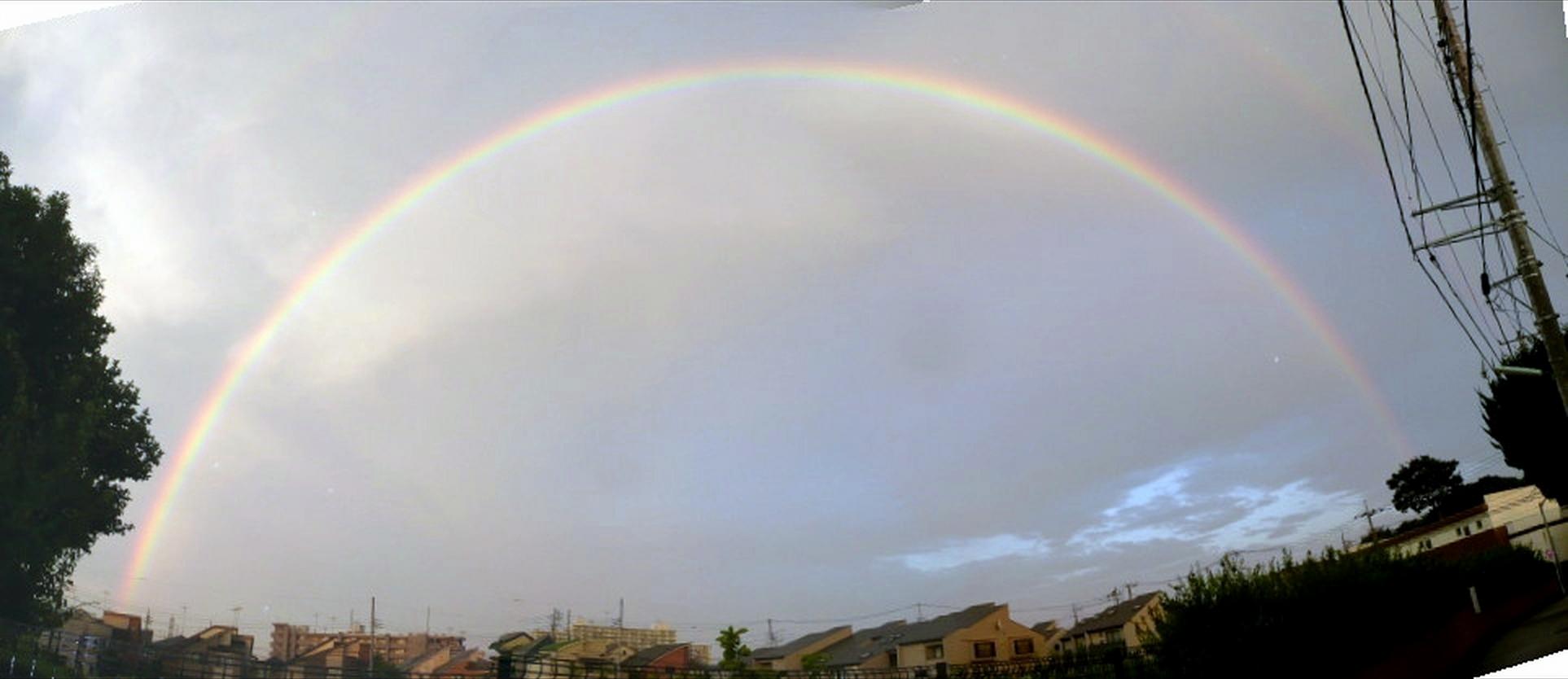 いや〜、すごいにじでした。全天にわたりはっきりとした大きな虹。