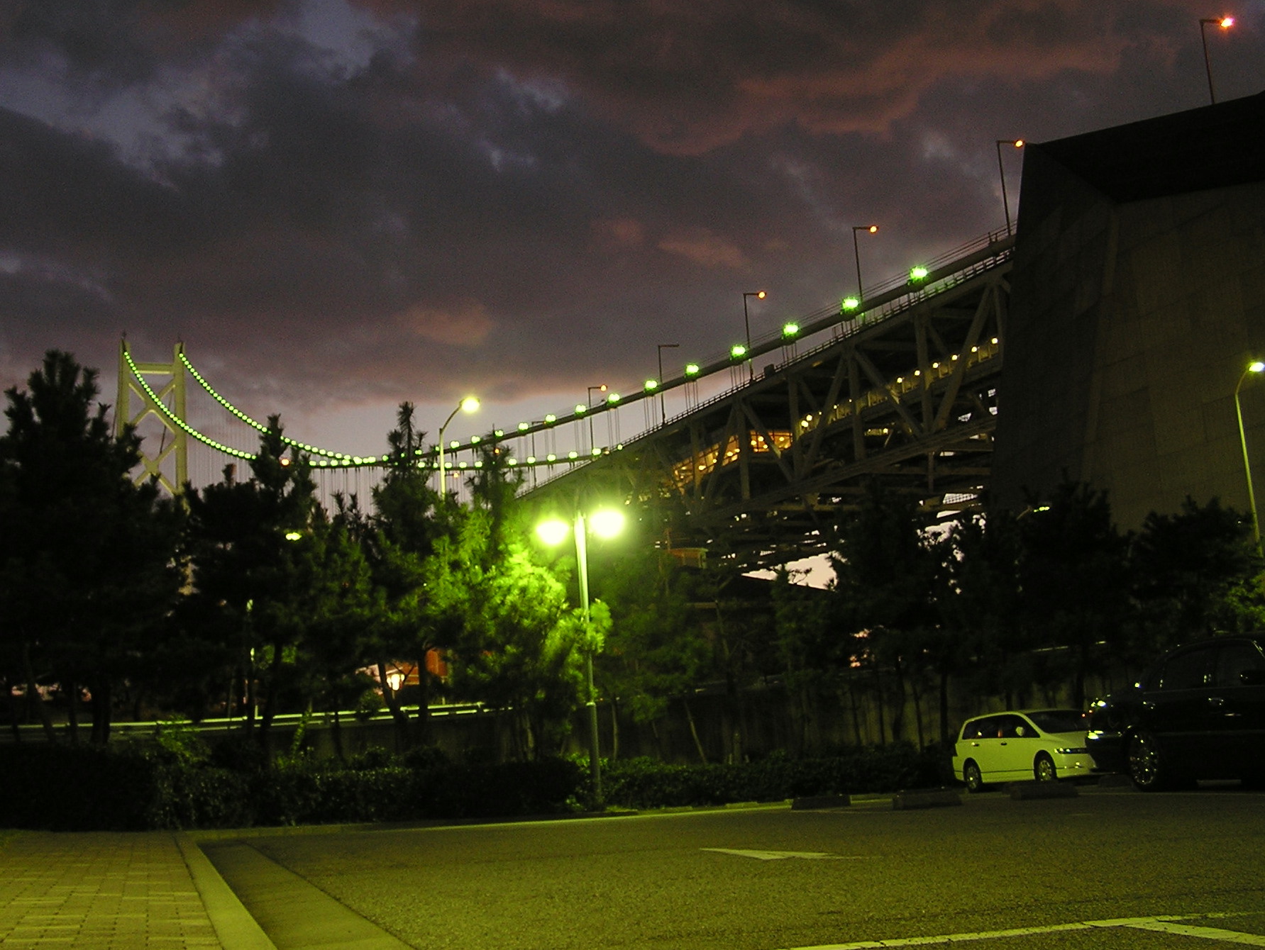 橋のイルミネーション 時間で色が変わります 00分には、レインボーに・・・
