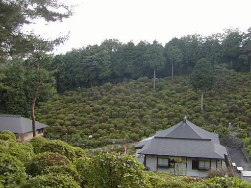 경내의 주위가 유발상의 경사면에 둘러싸여 배 밑바닥과 같은 지형이 되어 있습니다.
