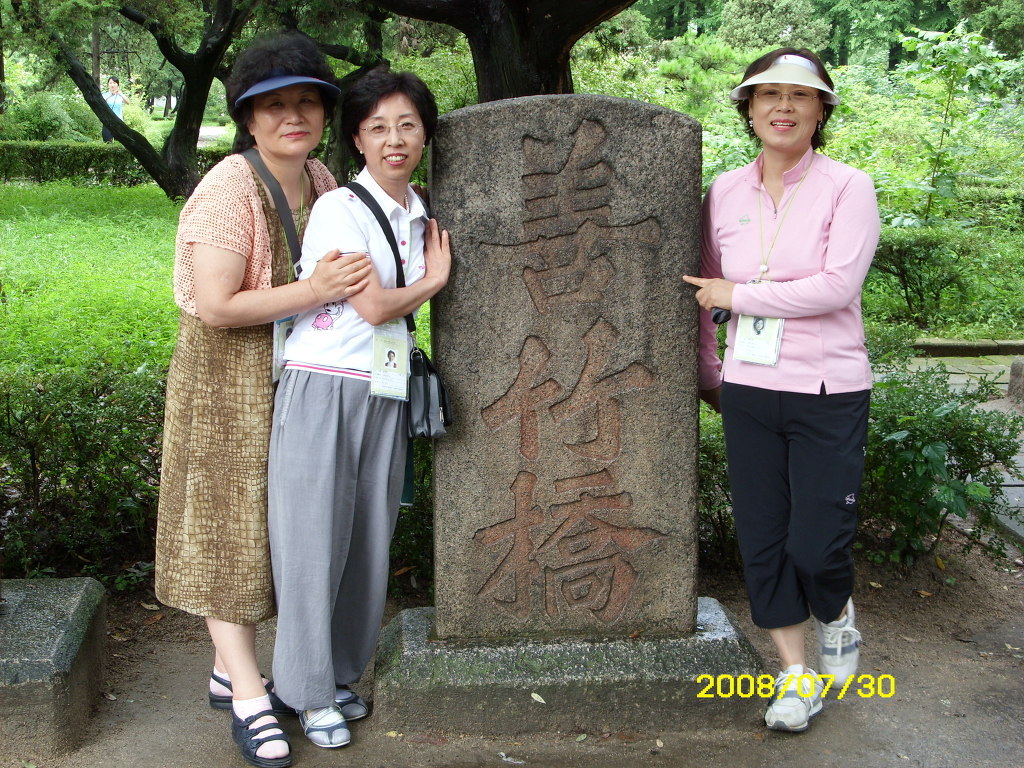 高麗が滅亡した時期,高麗の忠臣だったチョンモンズが異邦院 (李成桂の息子)によって殺害された所です. 李成桂はチョンモンズが殺害されたことが分かって,高麗の忠臣だったチョンモンズを称えるために前にスングヤングソワン(チョンモンズの面倒を見る死当たり似ている所)を建てました.二つとも残っています.ソンズックギョにはまだチョンモンズが殺害された時の血痕が残っていると言うのに,これは mystery..^^
