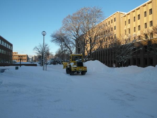 この時除雪車は大きい道路とメイン・ストリートを除雪機械では路地や小さな道路を引き受けて除雪作業をする