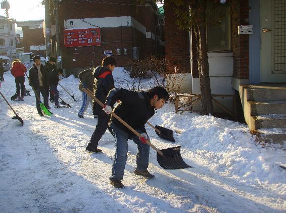 한국은 눈을 싹 다 치워야 한다는 강박관념을 가지고 있음.