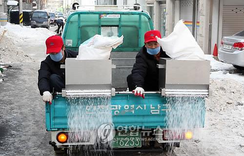 소금을 뿌리는 트럭