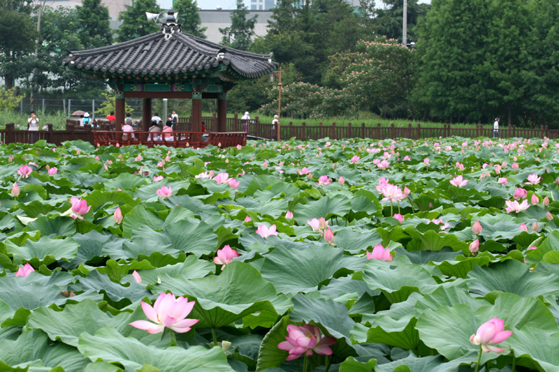 ドクジン公園は全州市の徳津洞にある公園として, 造景団,趣向正課みたいな伝統建物たちもあって動物園, テニスコート, プールを含めた慰楽施設も 揃っていると言います. 高麗時代から造成された池である徳津号一帯の遊園地です.