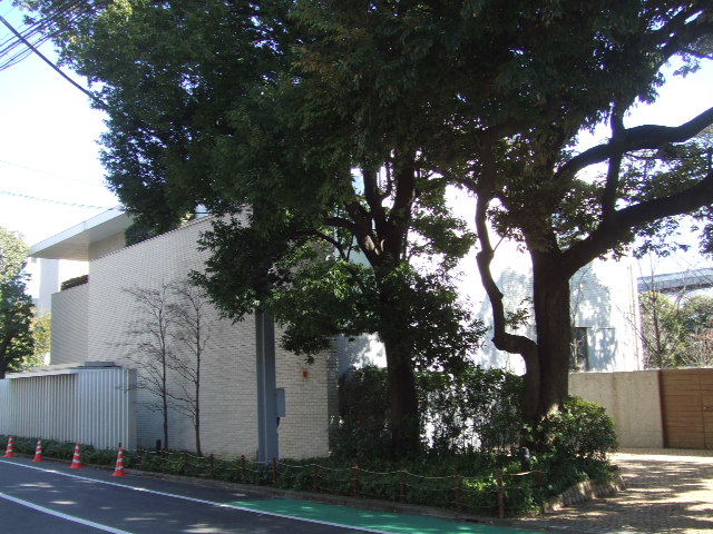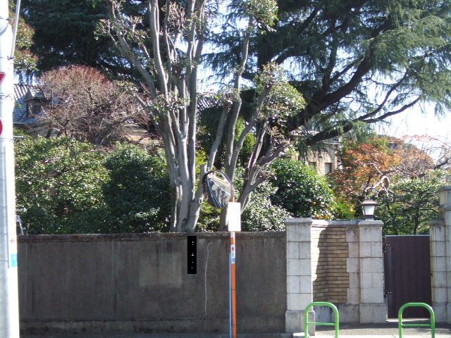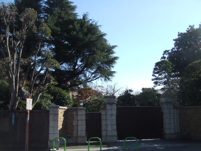 写真正面に見えるのは、白金(shirokane)にある、聖心(seishin)女子学院の敷地です。白金(shirokane)にある、聖心(seishin)女子学院(1910年開校)は、広尾(hiro)(東京都心部の高級住宅地の一つ)にある、私立女子大学、聖心(seishin)女子大学(1916年開校。東京areaの、お嬢様大学(富裕層の娘が通う大学)の一つとして知られる)の、中等科・高等科に当たる、私立の女子中学校・高校で、やはり、東京areaの、お嬢様高校(富裕層の娘が通う高校)の一つとして知られています。