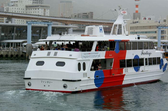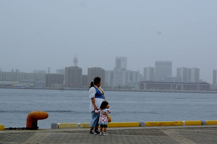 海に向かって 座っています 対面にポートタワーとオリエンタルホテルが在ります
