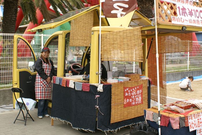 ガルウィングの荷室ドアの、みたらし団子屋さんです。