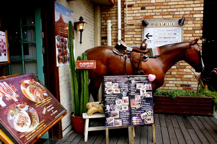 何故か馬の実物大模型 ウエスタン風のレストランなのでしょうか?