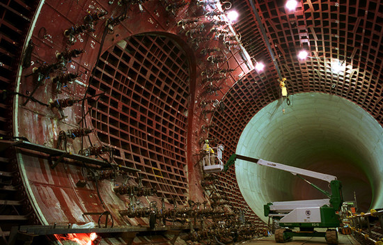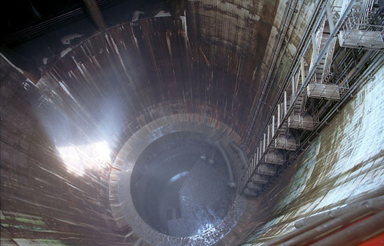 ゾアブ水槽の横にいる第1管(直径 32m, 深く 75mで宇宙往復船が充分に入って行く大きさ)