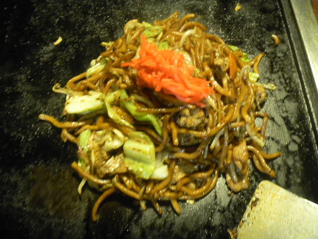 豚肉、焼き蕎麦。焼き蕎麦は、この時は、店員さんに作って貰いました。