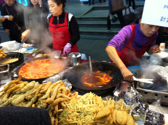 韓国の伝統食べ物である抜くことは味がパサックパサックして子たちが歩きながら食べる食べ物