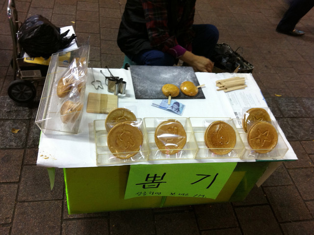 한국의 전통음식인 뽑기는 맛이 빠삭빠삭해서 애들이 걸어가면서 먹는 음식
