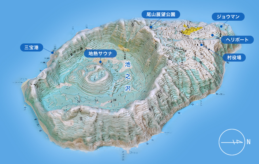 도쿄도 아오가시마무라, 인구 201명 화산 분화구안에 취락이 있습니다