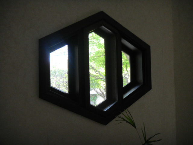 ロビー(玄関・家の入口の空間)の、部分(窓)。