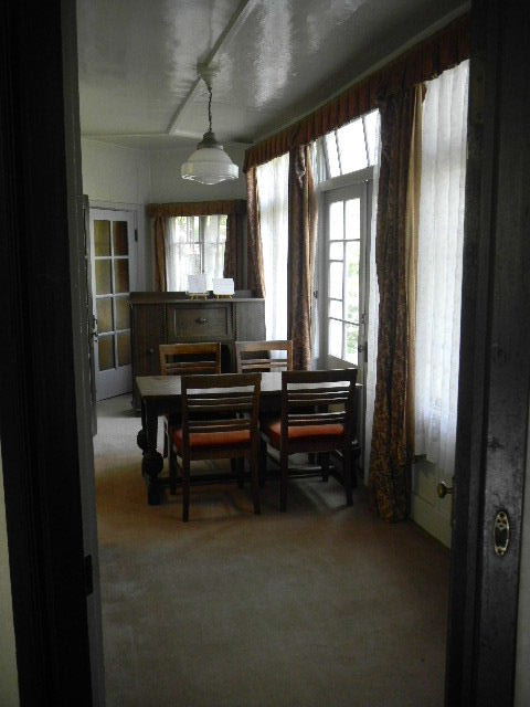 応接間・居間(living room)から見た、応接間・居間(living room)に付属した、サンルーム(sunroom)。サンルーム(sunroom)は、大きな窓で、庭の景色を見たり、日の光を浴びながら、寛ぐ部屋です。