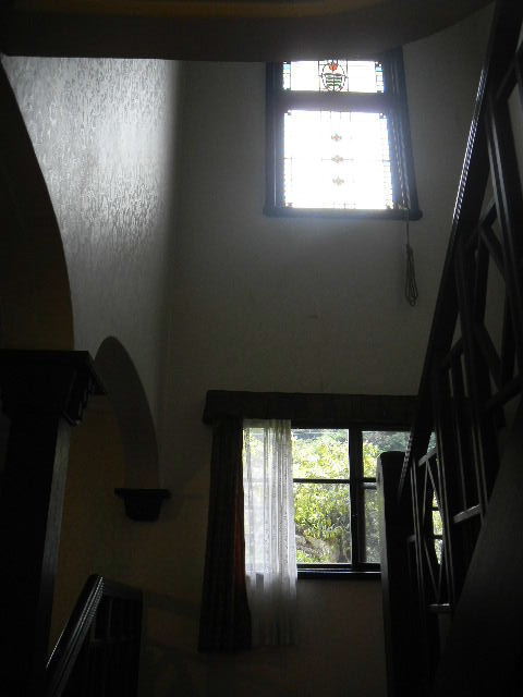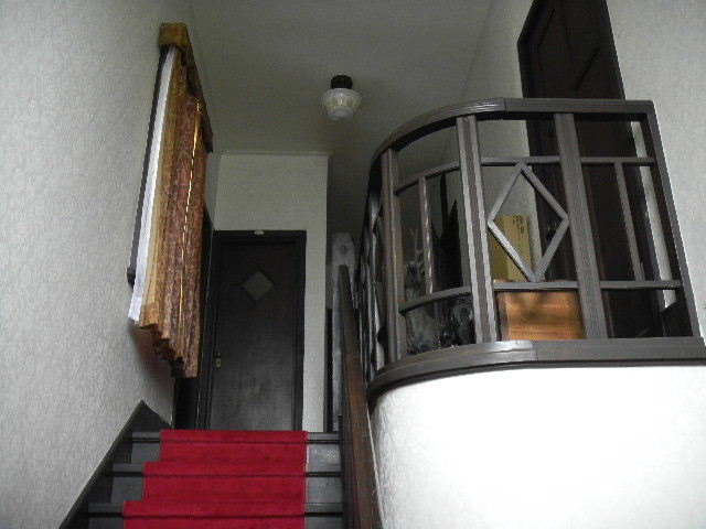 写真右下の、階段の手摺りの柱の上の部分は、角が削られています。こうする事によって、子供や女性に、恐怖感を感じさせない効果があるそうです。