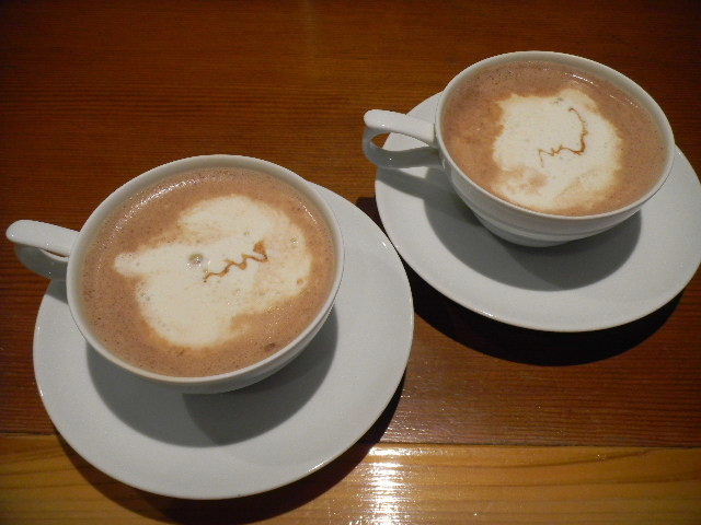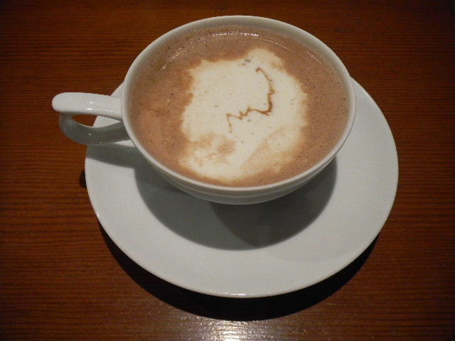 写真以下2枚。この、カフェ(cafe)・喫茶店(日本式coffee shop)の、ココア(hot cocoa)。この店の、ココア(hot cocoa)は、お気に入りとなっています。この店のココア(hot cocoa)は、5時間かけて練って、12時間、寝かして作られています(手間がかかっている割に、手頃な値段です(とても良心的な値段です))。この店の、ココア(hot cocoa)は、とても、美味しいと思います。ちなみに、この店は、店に入って、すぐ右側の、カウンター(counter)席が、落ち着きます。