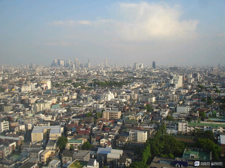 도심 주변 山도 보이지않고 녹색 자연은 찾아볼수없는 숨막히는 콘크리트 사막 = 도쿄