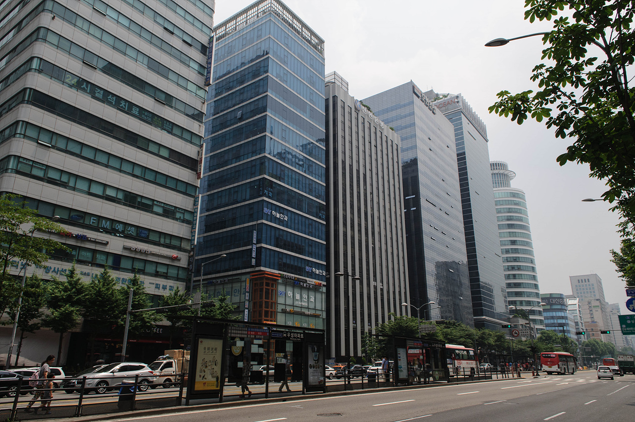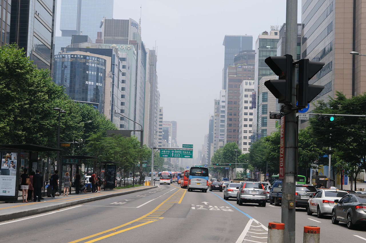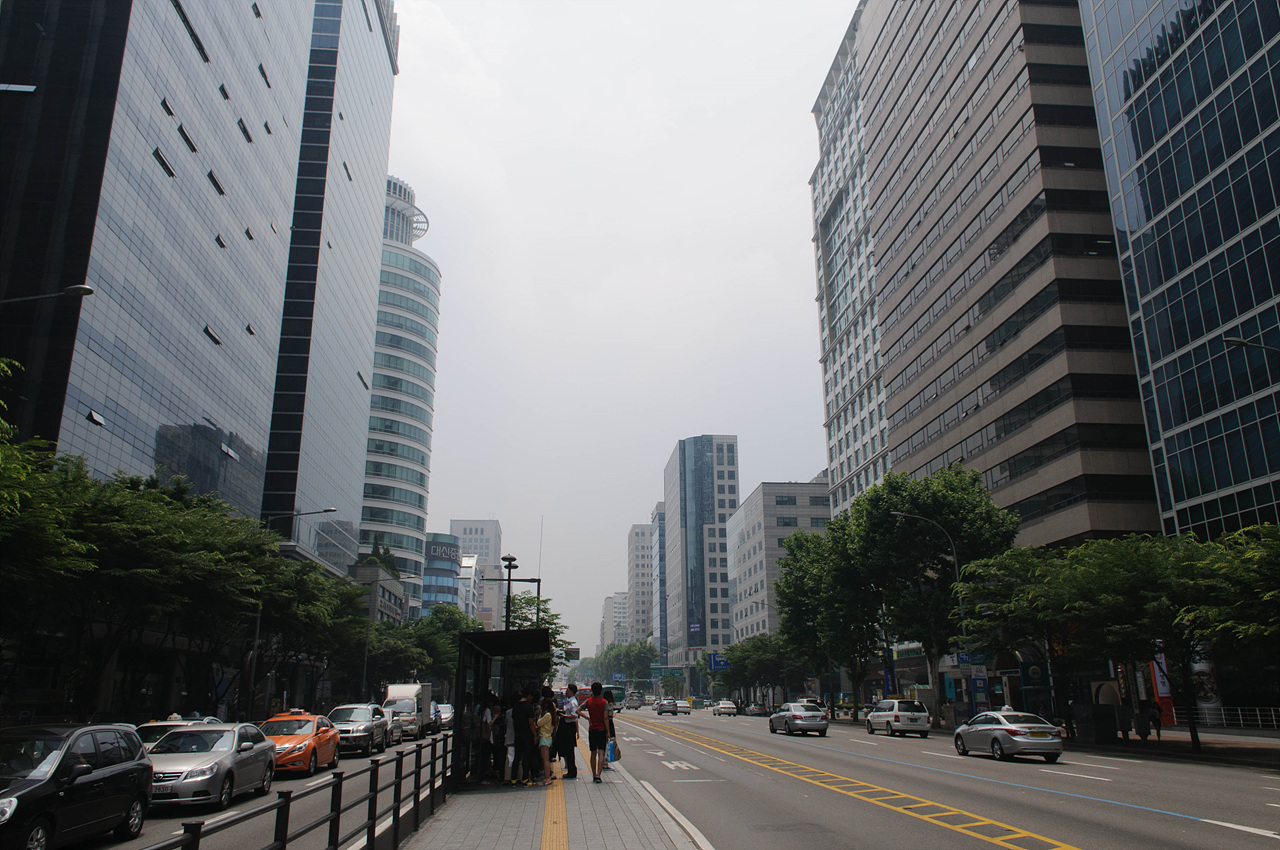 흐린 날씨의 서울 강남 거리